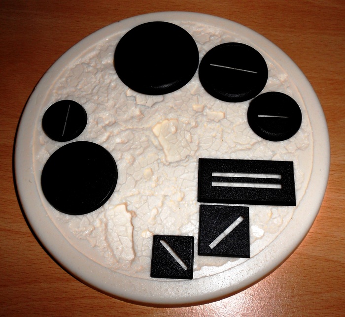 well basically it appears to be a 6 inch round base detailed as such based on various designs needed...stick some green stuff on your base press it into the basing pad antidy the edge. and you have neatly detailed bases.